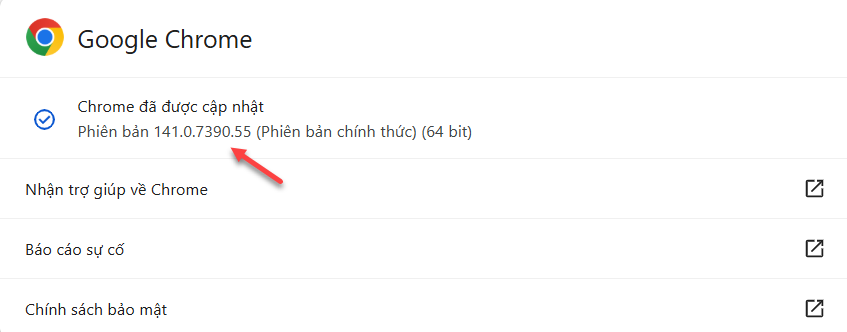 Trước tiên bạn sẽ vào phần sau để biết phiên bản của trình duyệt đang dùng: