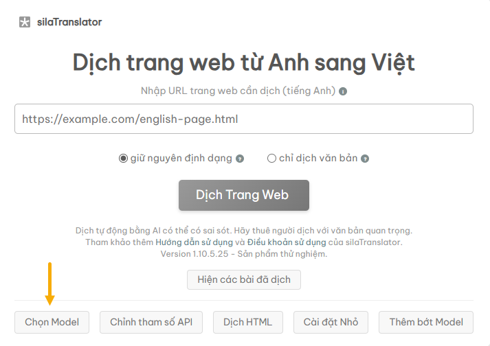 Tại giao diện chính của ứng dụng, bạn click vào Chọn Model.