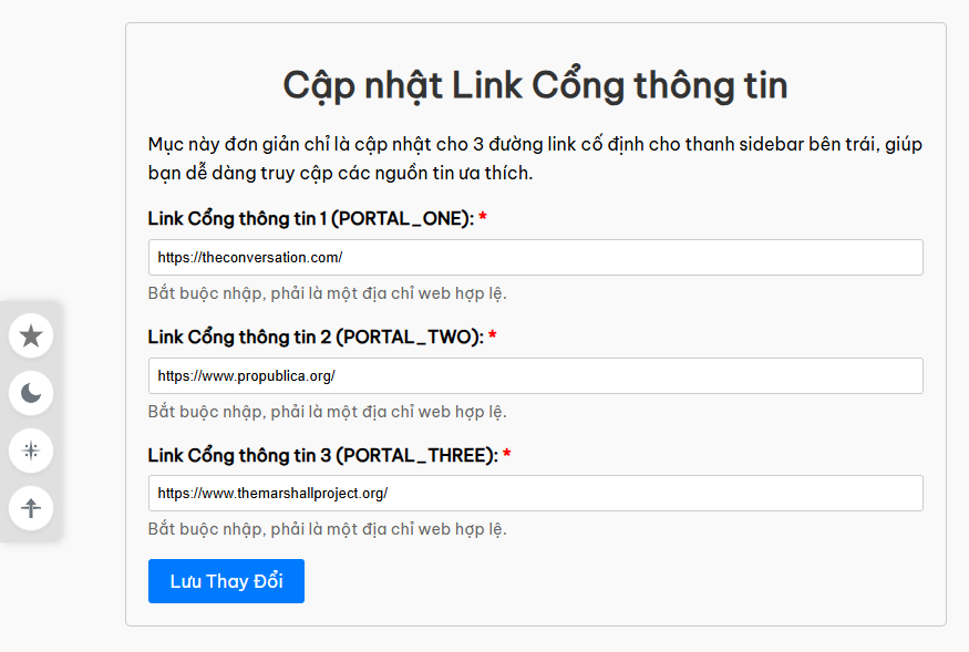 Sau khi lưu bạn sẽ thấy sidebar trái xuất hiện ở trang dịch web, nó sẽ chứa 3 đường link các website mà bạn muốn lưu: