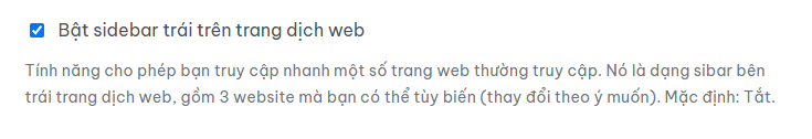 Bật sidebar trái trên trang dịch webthì click chọn vàocheckboxnhư hình bên dưới: